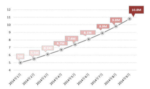 【趋势科技2014年安卓平台APK处理数量增长趋势图】